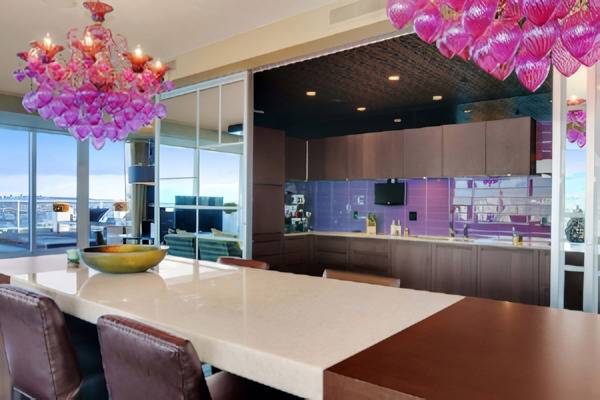 If you’re looking for a little bit of a different way to incorporate new colors into your decor, try a fun colored light fixture! Completely change your kitchen decor by adding bright pink chandeliers!