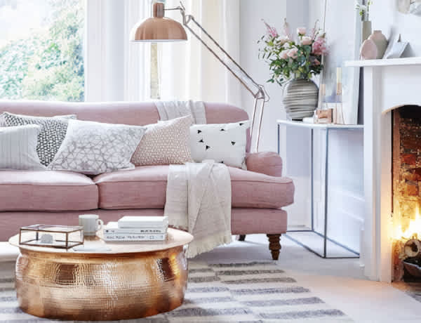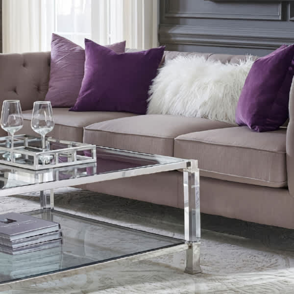 A super easy and inexpensive way to spruce up a room in your home is to add decorative pillows or throw blankets! Take a boring, neutral-colored couch and turn it into a fun piece of furniture by adding brightly colored pillows and a blanket to match. Check out the purple pillows on this couch!