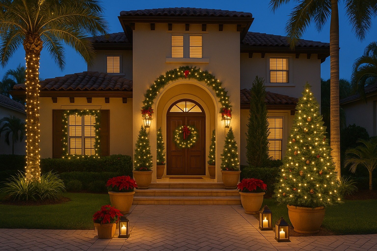 In Palm Beach County, outdoor living is a year round luxury. The holidays are the perfect time to refresh your landscaping, add seasonal planters, or highlight architectural features with tasteful lighting. Use décor that enhances your home’s exterior without overwhelming the natural beauty of your surroundings.