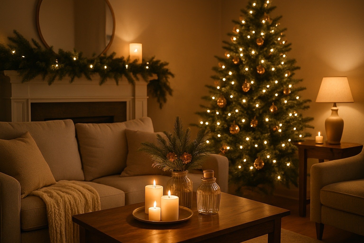 Scent is one of the most powerful ways to set the tone for the holidays. Choose fragrances that feel refined and natural. Hints of pine, warm vanilla, amber, or citrus bring depth to your home without feeling overpowering. Pair these scents with layered lighting to create a warm and intimate atmosphere. Soft white lights, candles, and strategically placed accent lamps can transform the look and feel of your home during the evenings.