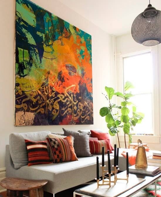While you may not be able to change the wall paint color, you can certainly add artwork to them! Wall art can cover up ugly paint colors, and make a space feel more like home. Use command strips to hang art or lean large canvases on furniture.