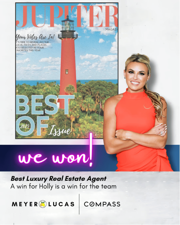 This year, the Meyer Lucas Team was named Best Real Estate Team in Palm Beach County for the second year in a row, earned a spot on Compass’s Top 100 Teams nationwide, and saw our founder Holly Meyer Lucas recognized as Best Real Estate Agent in Jupiter by Jupiter Magazine. These weren’t just awards, they were reminders of what happens when consistency meets care, and when trust becomes a standard, not a goal.