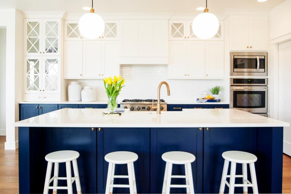 Colorful kitchens are back, but not quite the way you remember. One of the latest design trends is to add a pop of color to your kitchen through a STUNNING kitchen island. Looking to take your all-white, modern kitchen to the next level?