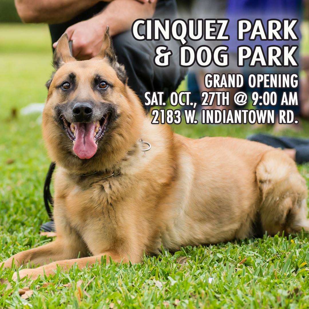 The GRAND OPENING is this Saturday, October 27th at 9:00 am at Cinquez Park. (2183 West Indiantown Road). 🐶🎉🐾 There will be a special appearance at the ceremony by 'McGruff the Crime Dog' and a Halloween Dog Costume Contest!!