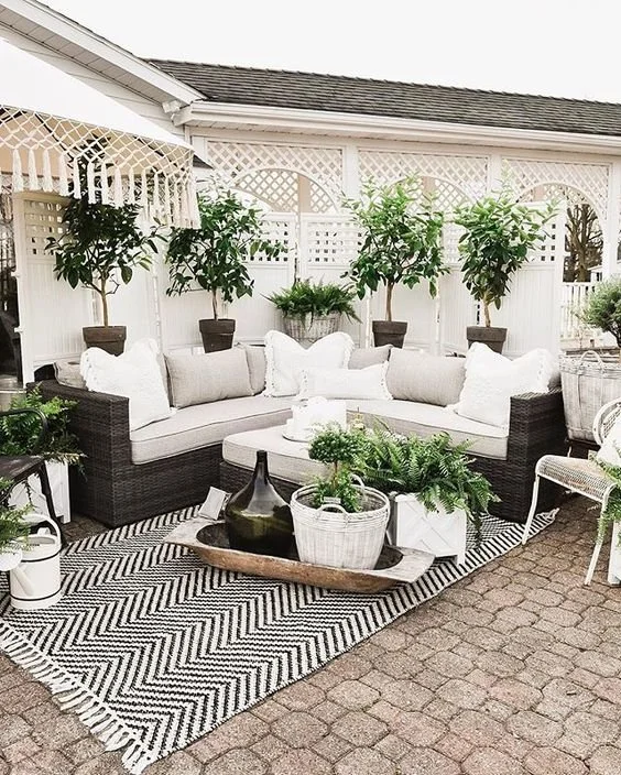 Going in and out of your house to get drinks or snacks while sitting outside can get very annoying! Bar carts that have wheels are an easy fix and also look great outside! You can load up your bar cart with whatever you need, wheel it outside and then enjoy your time outside without going back and forth so much!