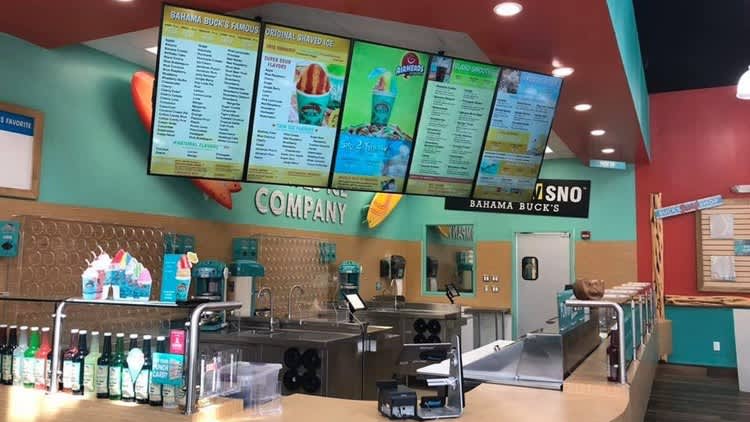 Bahama Bucks specializes in shaved ice and other frozen non-alcoholic drinks.