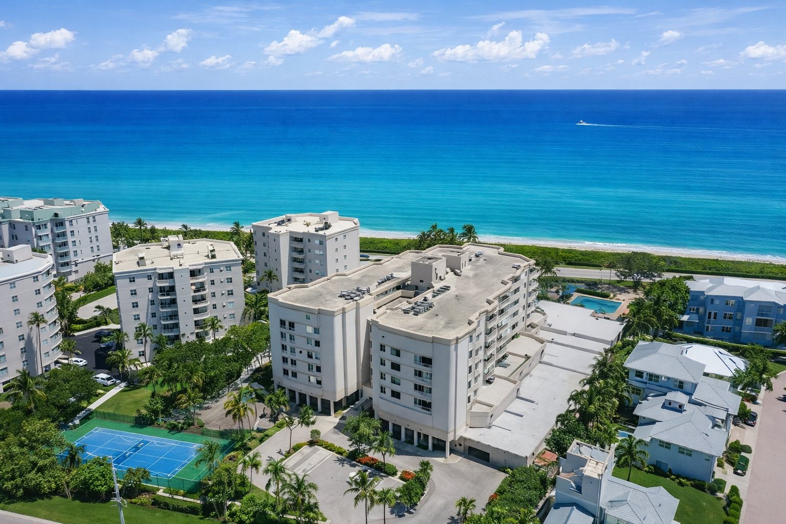 The community features spacious residences with generous floor plans and balconies designed to capture ocean breezes and sunrise views. Corinthians South primarily attracts full-time residents and seasonal homeowners who value tranquility, security, and true oceanfront living. With easy access to US-1 and I-95, the community offers both coastal seclusion and everyday convenience, making it a standout option for buyers seeking a refined beachfront lifestyle in Jupiter.